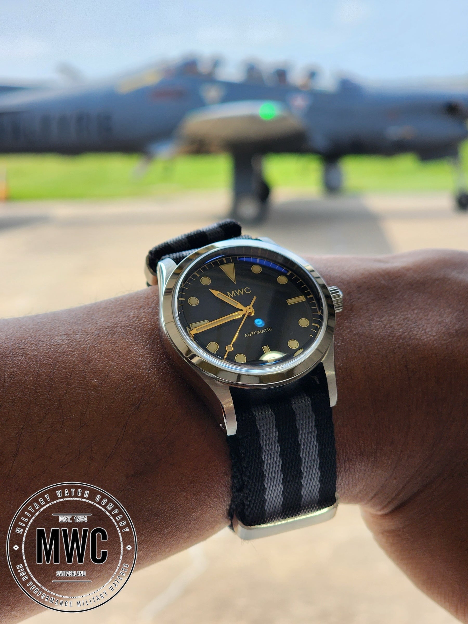 The watch measures 39mm in diameter and comes fitted with a black NATO strap It also pairs exceptionally well with other NATO options, as shown in the images shared by a serving air force officer who wears this model as his daily watch.